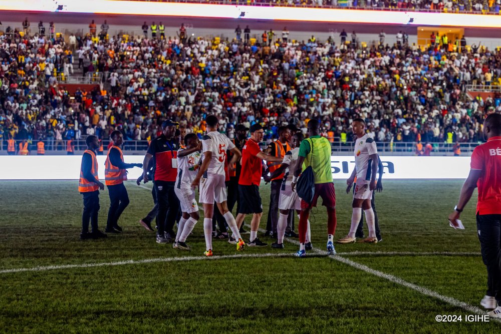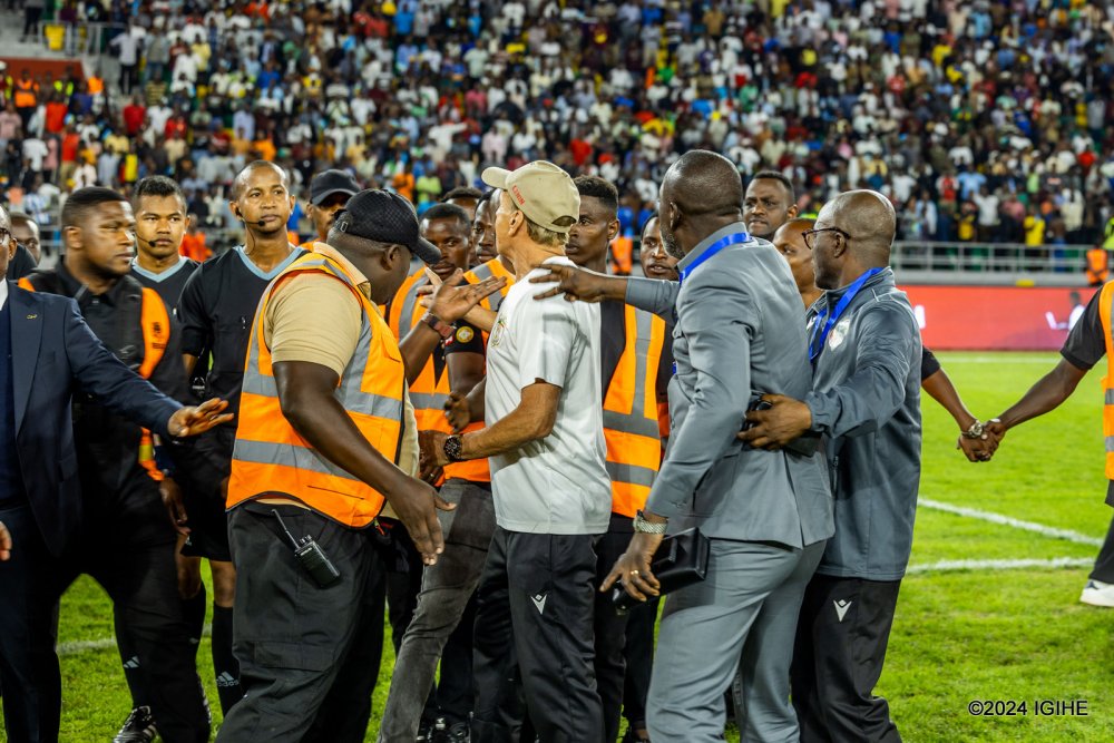 Umukino ukirangira, abakinnyi ba Bénin bashatse gushwana n’abasifuzi ndetse na bamwe mu batoza b’u Rwanda, ariko ku bw’amahirwe abashinzwe umutekano barahagoboka.